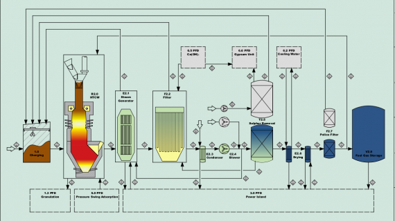 The resulting gas is so pure, it will be used in high-efficient gas-turbines or gas engines for maximum electricity at minimum CO2,